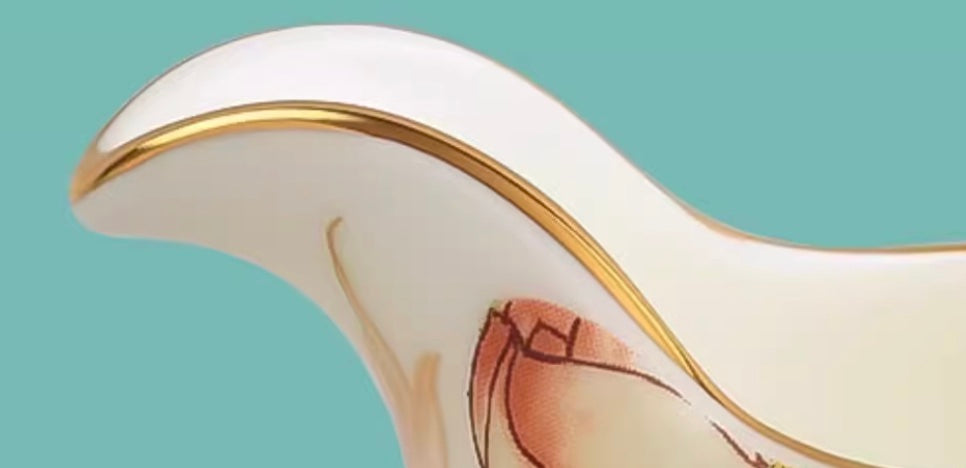Designed for both aesthetics and comfort, the 120 ml wine pitcher features a graceful curved spout for smooth, controlled pouring, while the two 10 ml wine cups rest on beautifully sculpted gold-tone bases that add height, balance, and ceremonial charm. The porcelain’s jade-like finish and rich enamel artwork evoke timeless craftsmanship, making the set a stunning centerpiece for intimate dinners, celebrations, or cultural-inspired dining experiences. Perfectly sized for personal sharing, it brings a sense of tradition and artistry to the modern table.