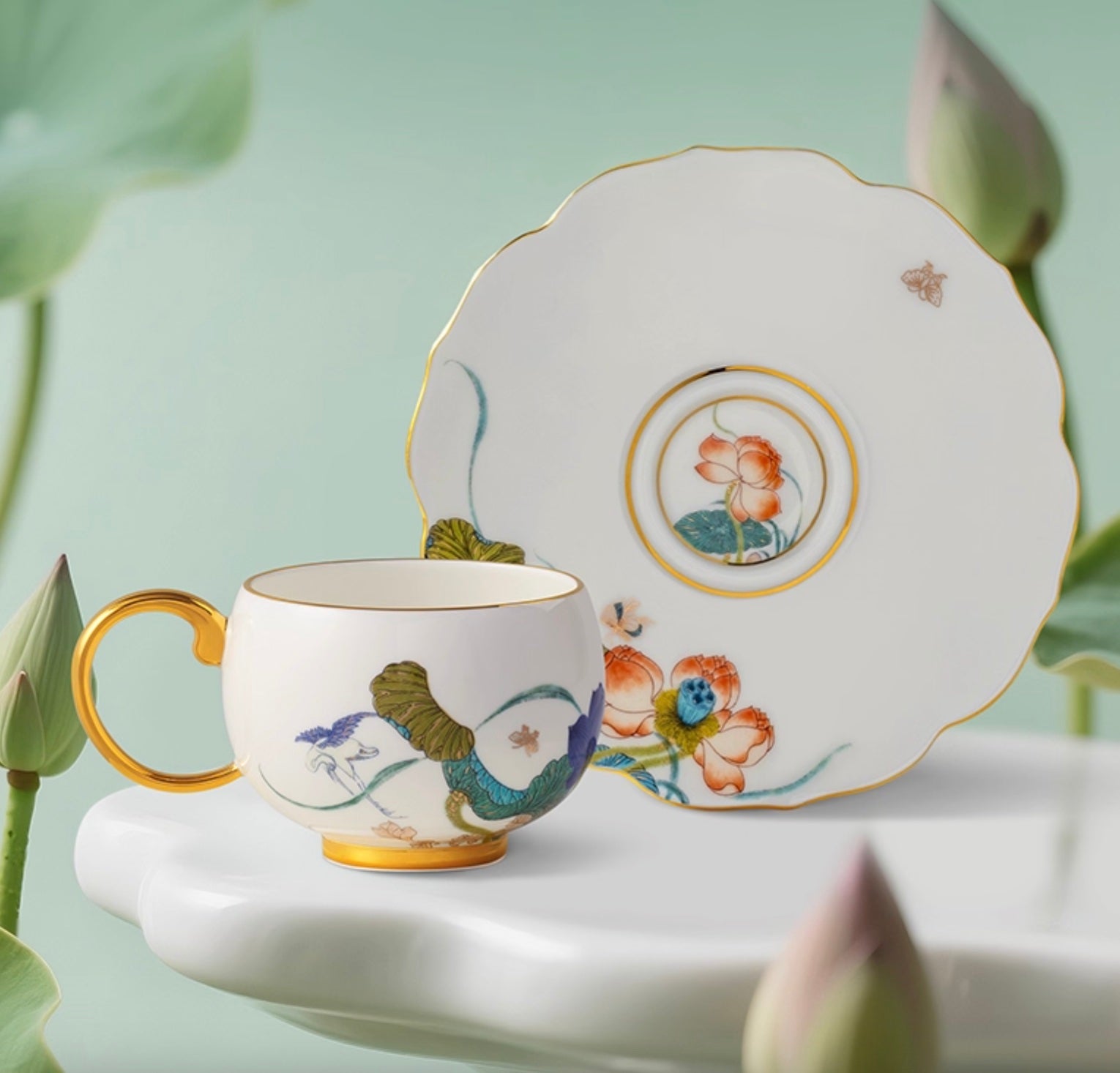 Lotus Gold-Trim Cup Set